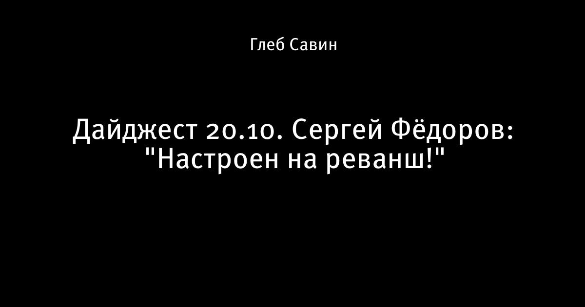 Дайджест 20.10. Сергей Фёдоров: "Настроен на реванш!"