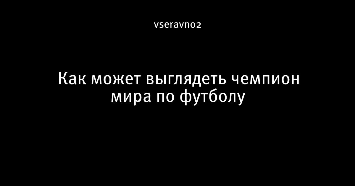 24 сентября 2015, 18:24 Как может выглядеть чемпион мира по футболу Автор vseravno2 Этот пост опубликован в блоге на Трибуне Sports.ru. Присоединяйтесь к крупнейшему сообществу спортивных болельщиков! Другие посты блога Объектив