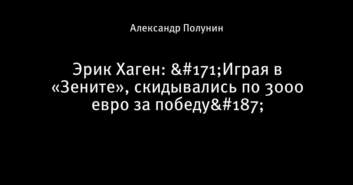 Эрик Хаген: «Играя в «Зените», скидывались по 3000 евро за победу»