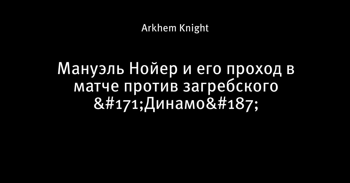 30 сентября 2015, 09:19 Мануэль Нойер и его проход в матче против загребского «Динамо» 1 Автор Arkhem Knight Этот пост опубликован в блоге на Трибуне Sports.ru. Присоединяйтесь к крупнейшему сообществу спортивных болельщиков! Другие посты блога Лечебница Аркхем Мануэль Нойер