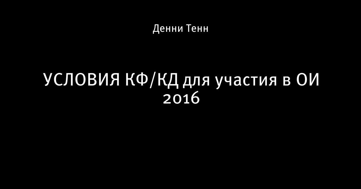 УСЛОВИЯ КФ/КД для участия в ОИ 2016