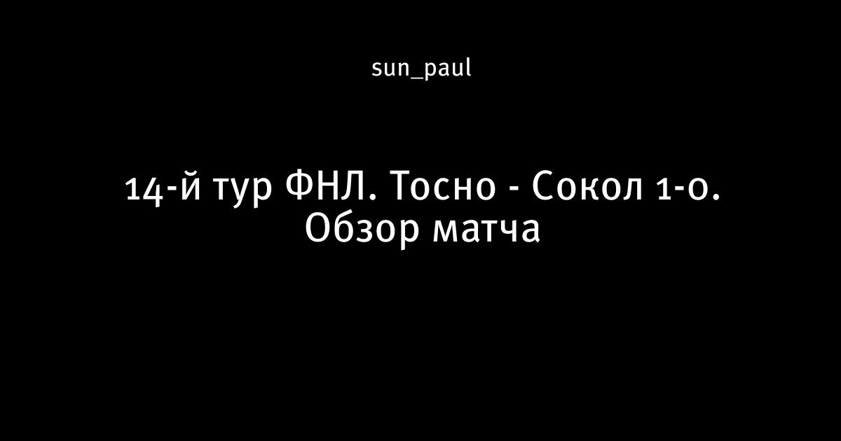 5 октября 2015, 11:02 14-й тур ФНЛ. Тосно - Сокол 1-0. Обзор матча 1 Автор sun_paul Этот пост опубликован в блоге на Трибуне Sports.ru. Присоединяйтесь к крупнейшему сообществу спортивных болельщиков! Другие посты блога Футбольная жизнь Петербурга Сокол Тосно Первая лига