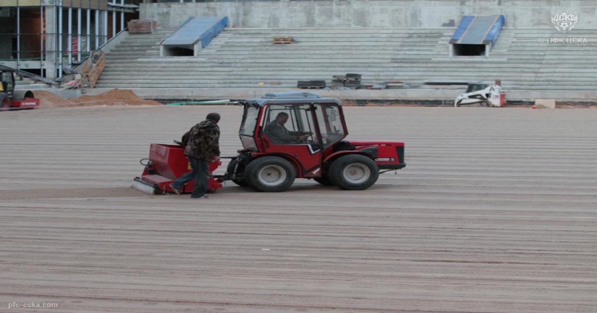 На стадионе ПФК ЦСКА засеяли футбольное поле