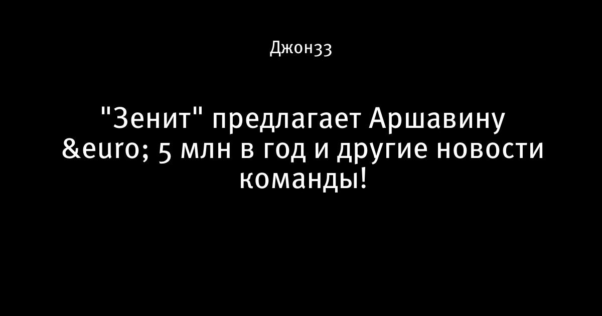 "Зенит" предлагает Аршавину € 5 млн в год и другие новости команды!
