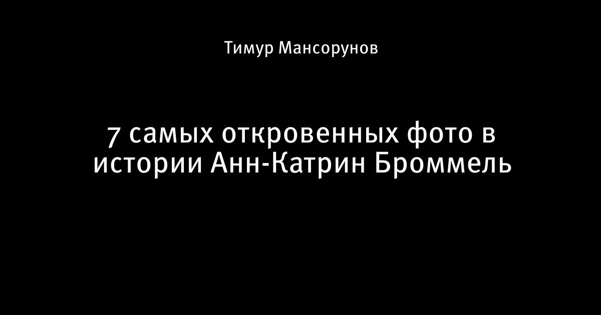 13 октября 2015, 18:38 7 самых откровенных фото в истории Анн-Катрин Броммель Автор Тимур Мансорунов Этот пост опубликован в блоге на Трибуне Sports.ru. Присоединяйтесь к крупнейшему сообществу спортивных болельщиков! Другие посты блога Объектив девушки и спорт