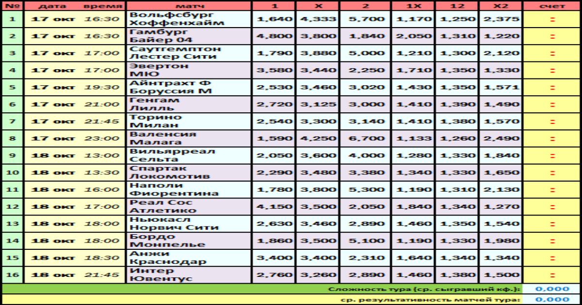 В помощь игрокам выкладываю эксельку для заполнения прогноза.
