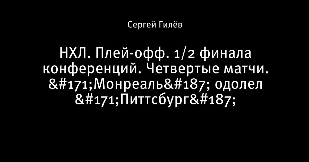 7 мая 2010, 12:42 НХЛ. Плей-офф. 1/2 финала конференций. Четвертые матчи. «Монреаль» одолел «Питтсбург» Монреаль Питтсбург 3:2 (1:2, 0:0, 2:0) Детройт Сан-Хосе 7:1 (5:0, 1:1, 1:0) Автор Сергей Гилёв Этот пост опубликован в блоге на Трибуне Sports.ru. Присоединяйтесь к крупнейшему сообществу спортивных болельщиков! Другие посты блога Айс-ТВ