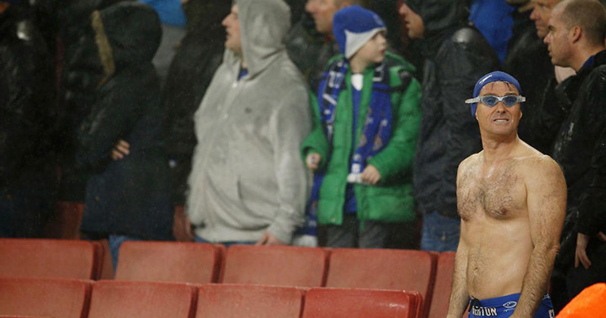 В Лондоне снова дождь. Эти болельщики «Эвертона» выглядели соответствующе.