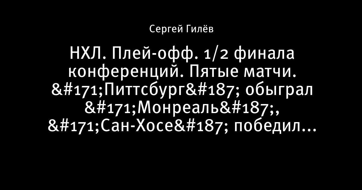 НХЛ. Плей-офф. 1/2 финала конференций. Пятые матчи. «Питтсбург» обыграл «Монреаль», «Сан-Хосе» победил «Детройт»