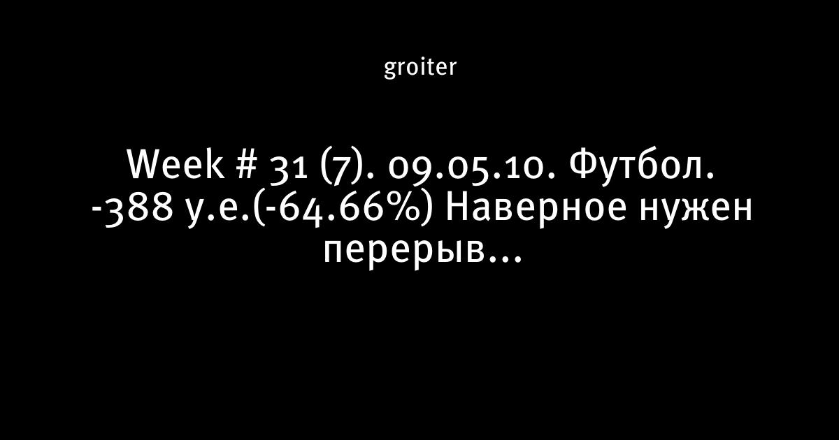 Week # 31 (7). 09.05.10. Футбол. -388 у.е.(-64.66%) Наверное нужен перерыв...