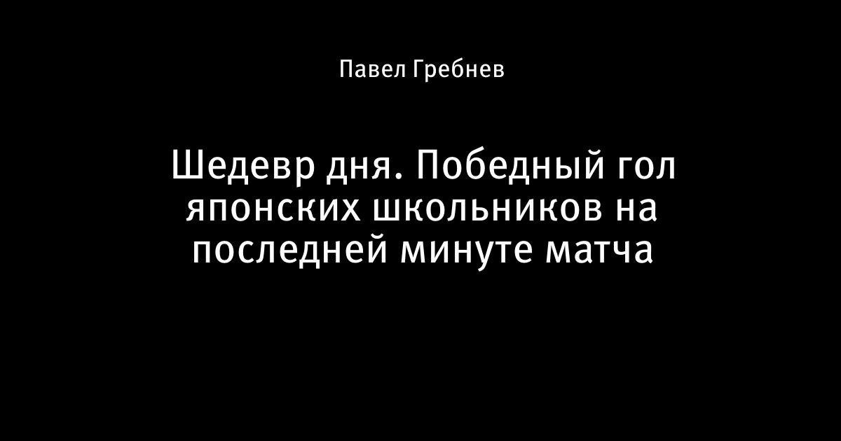 2 ноября 2015, 16:11 Шедевр дня. Победный гол японских школьников на последней минуте матча Автор Павел Гребнев Этот пост опубликован в блоге на Трибуне Sports.ru. Присоединяйтесь к крупнейшему сообществу спортивных болельщиков! Другие посты блога Эстетика футбола любительский футбол FIFA Puskas Award