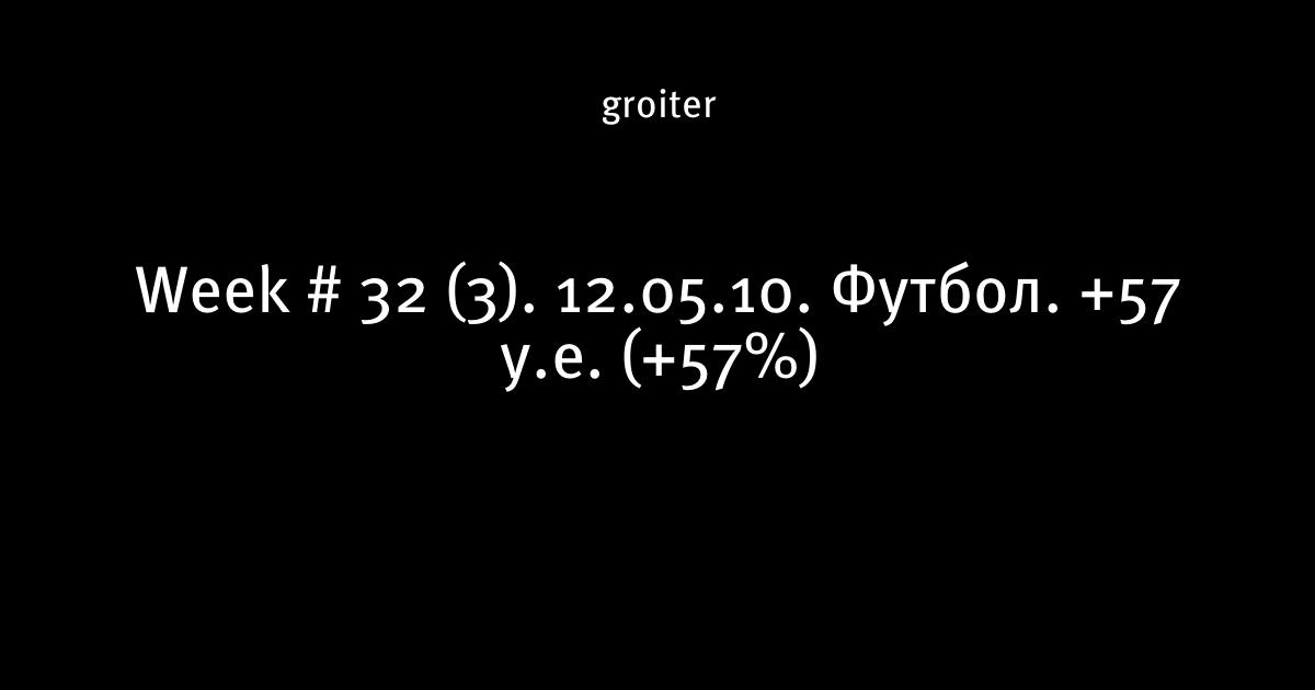 Week # 32 (3). 12.05.10. Футбол. +57 у.е. (+57%)