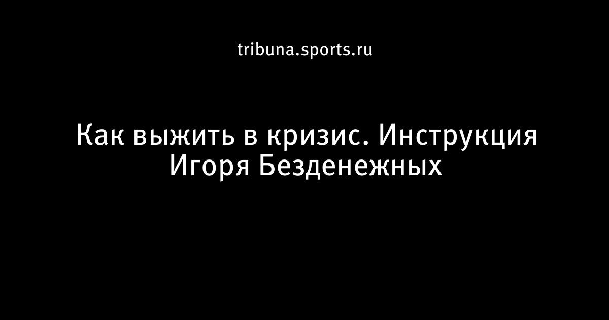 16 ноября 2015, 14:32 Как выжить в кризис. Инструкция Игоря Безденежных 1 Автор tribuna.sports.ru Этот пост опубликован в блоге на Трибуне Sports.ru. Присоединяйтесь к крупнейшему сообществу спортивных болельщиков! Другие посты блога Телевизор 3.0 Игорь Безденежных
