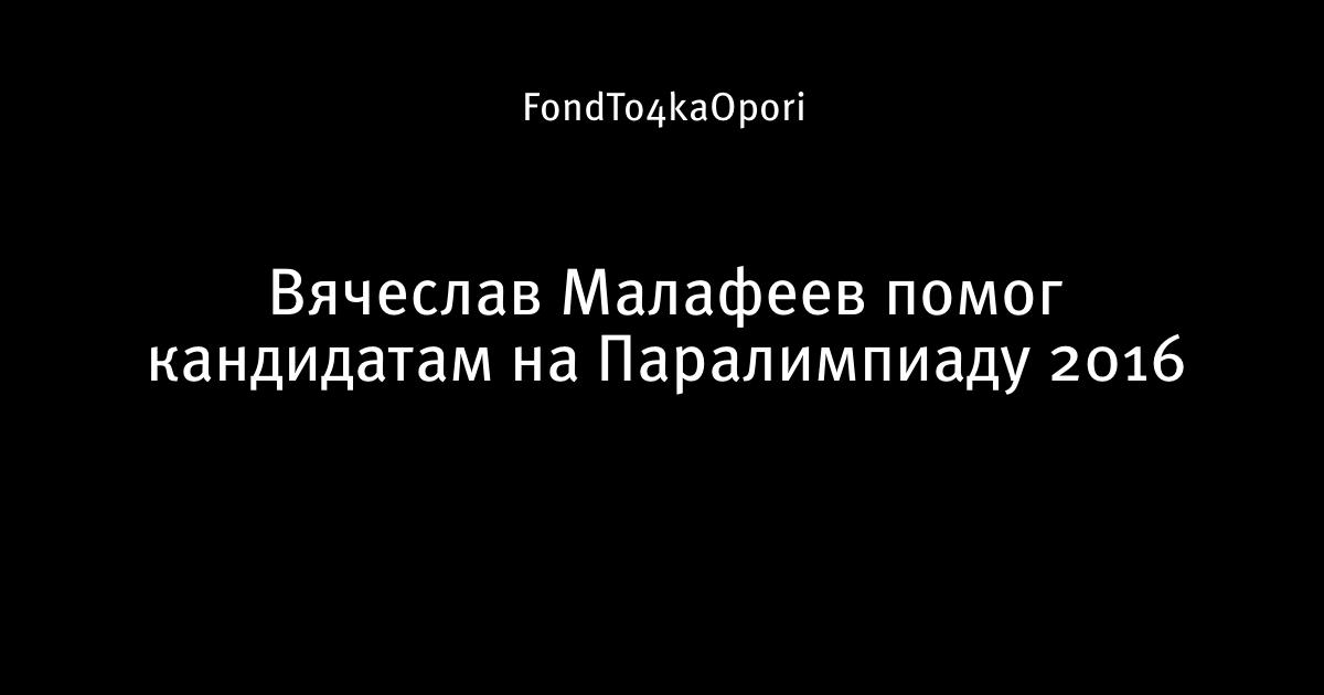 10 500 рублей, собранные в поддержку БФ «ТОЧКА ОПОРЫ» на благотворительном аукционе «Продажные звезды» за лот с участием Вячеслава Малафеева, пойдут на приобретение медикаментов кандидатам на Паралимпиаду 2016 – членам сборной Санкт-Петербурга по легкой атлетике с поражением опорно-двигательного аппарата. Чтобы обеспечить будущих паралимпийцев лекарствами на весь период подготовки в Летним Играм в Рио-де-Жанейро необходимо собрать еще 89 500 рублей.