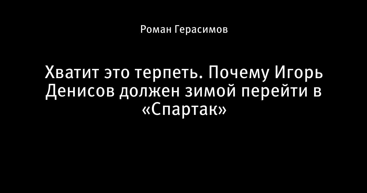 Хватит это терпеть. Почему Игорь Денисов должен зимой перейти в «Спартак»