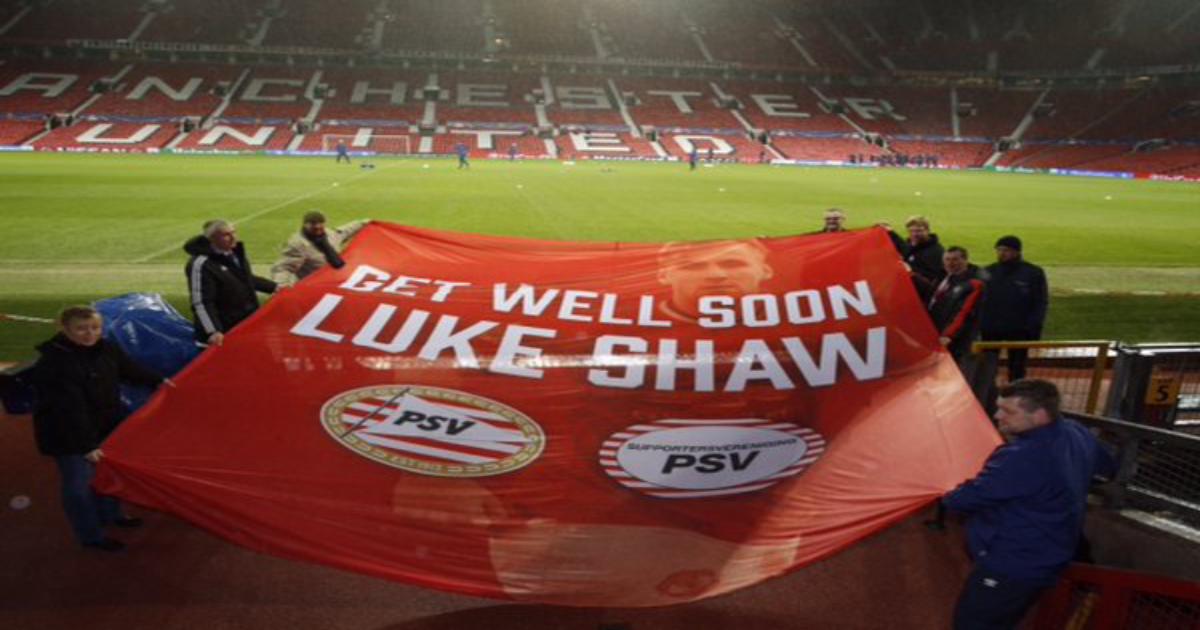 К матчу пятого тура группового этапа Лиги чемпионов фанаты ПСВ приготовили баннер: «Поправляйся скорее, Люк Шоу».