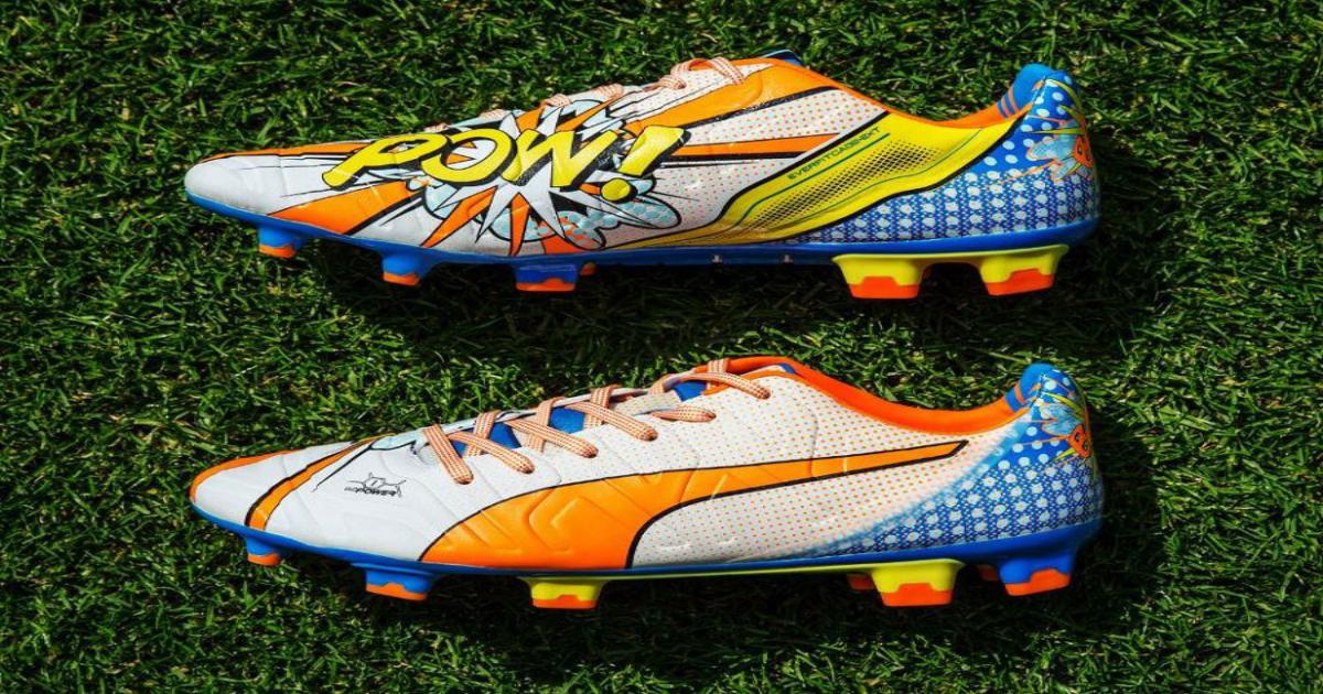 Как мы знаем Puma регулярно выводит на рынок оригинальные дизайны бутс. Буквально недавно немецкий бренд выпустил обновлённый дизайн бутс evoPOWER 1.2 Graphic, внешний вид которых навеян графическими рисунками 1950-х. Бутсы раскрашены в двухмерные цвета с чёткими черными полосами, всё это напоминает старые комиксы.