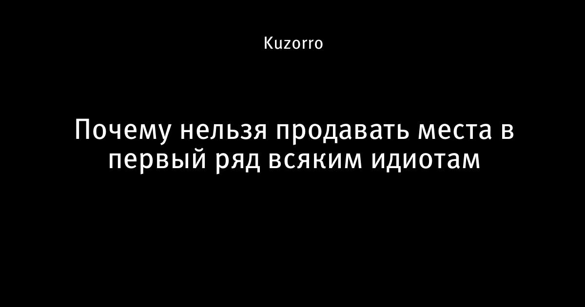 26 ноября 2015, 11:11 Почему нельзя продавать места в первый ряд всяким идиотам 1 Автор Kuzorro Этот пост опубликован в блоге на Трибуне Sports.ru. Присоединяйтесь к крупнейшему сообществу спортивных болельщиков! Другие посты блога Спорт-н-ролл