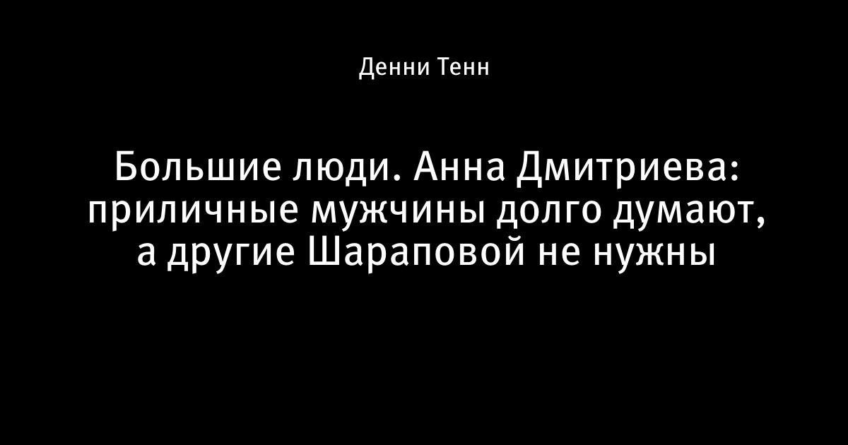 Большие люди. Анна Дмитриева: приличные мужчины долго думают, а другие Шараповой не нужны