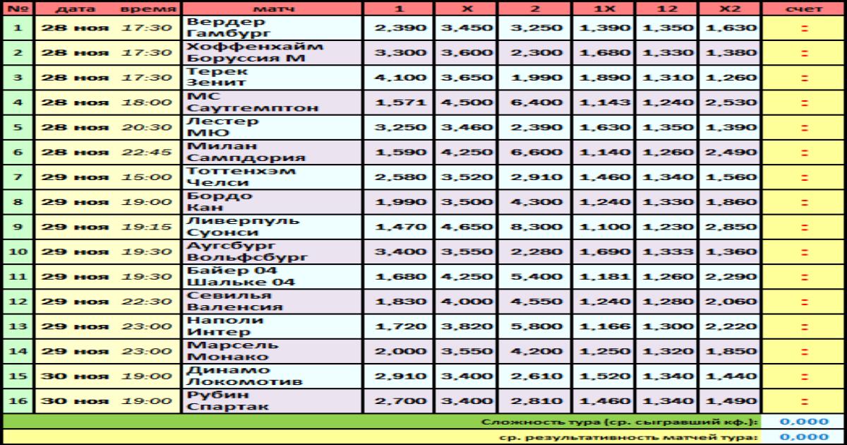В помощь игрокам выкладываю эксельку для заполнения прогноза.
