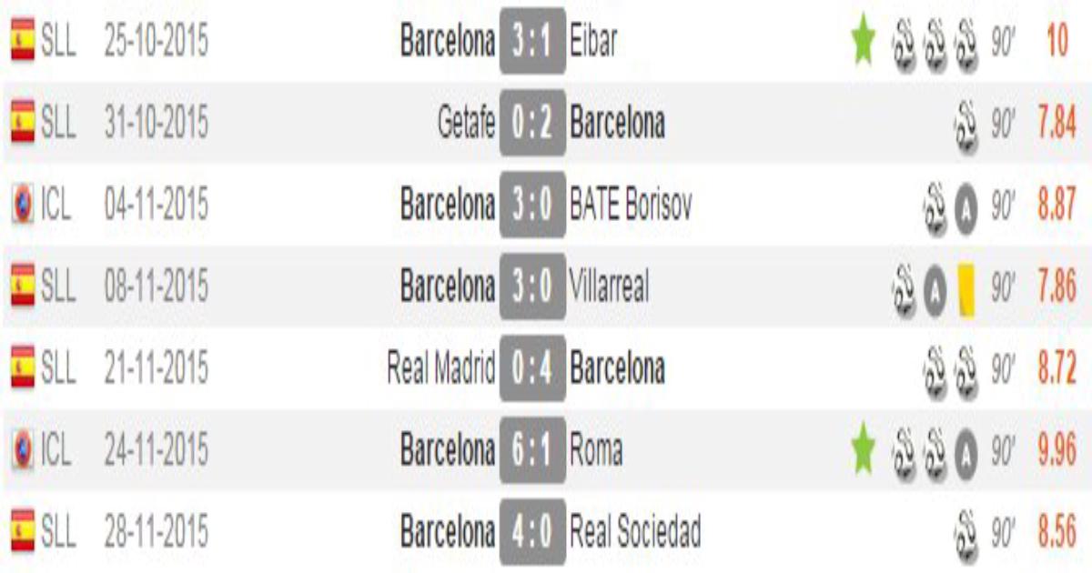 Луис Суарес. Статистика последних матчей