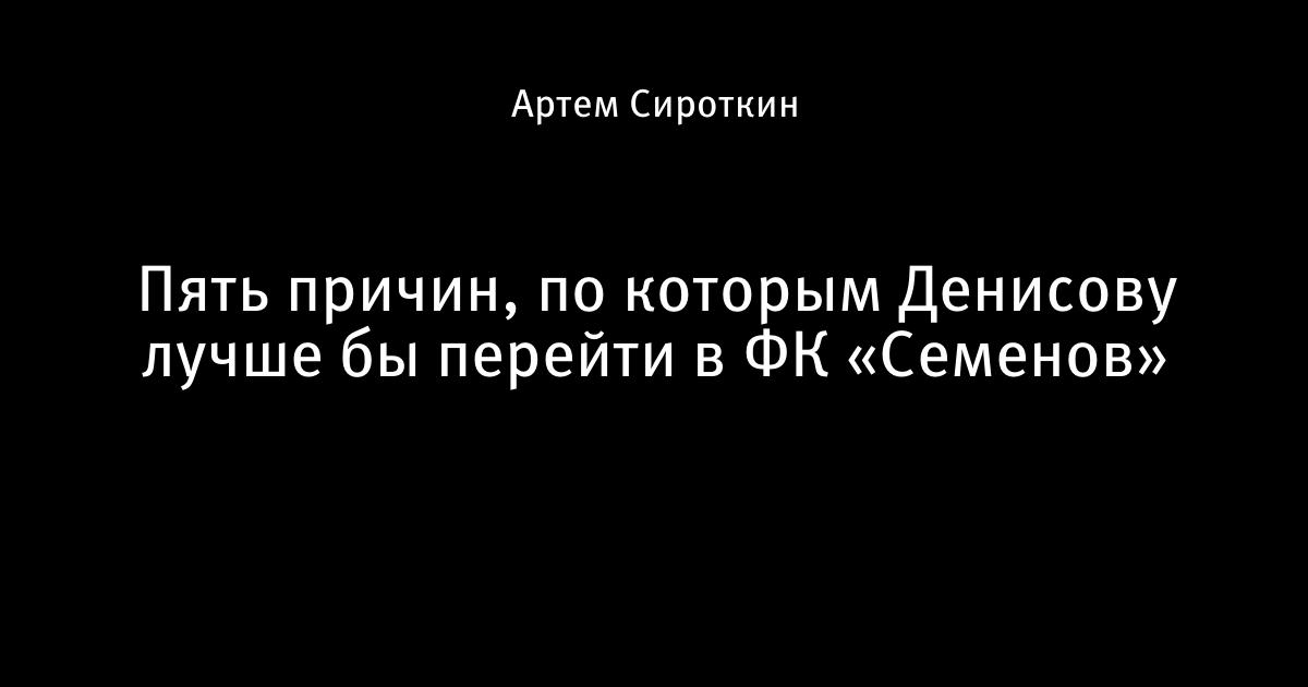 Итак, пять причин, по которым Денисову лучше бы перейти в ФК "Семенов".