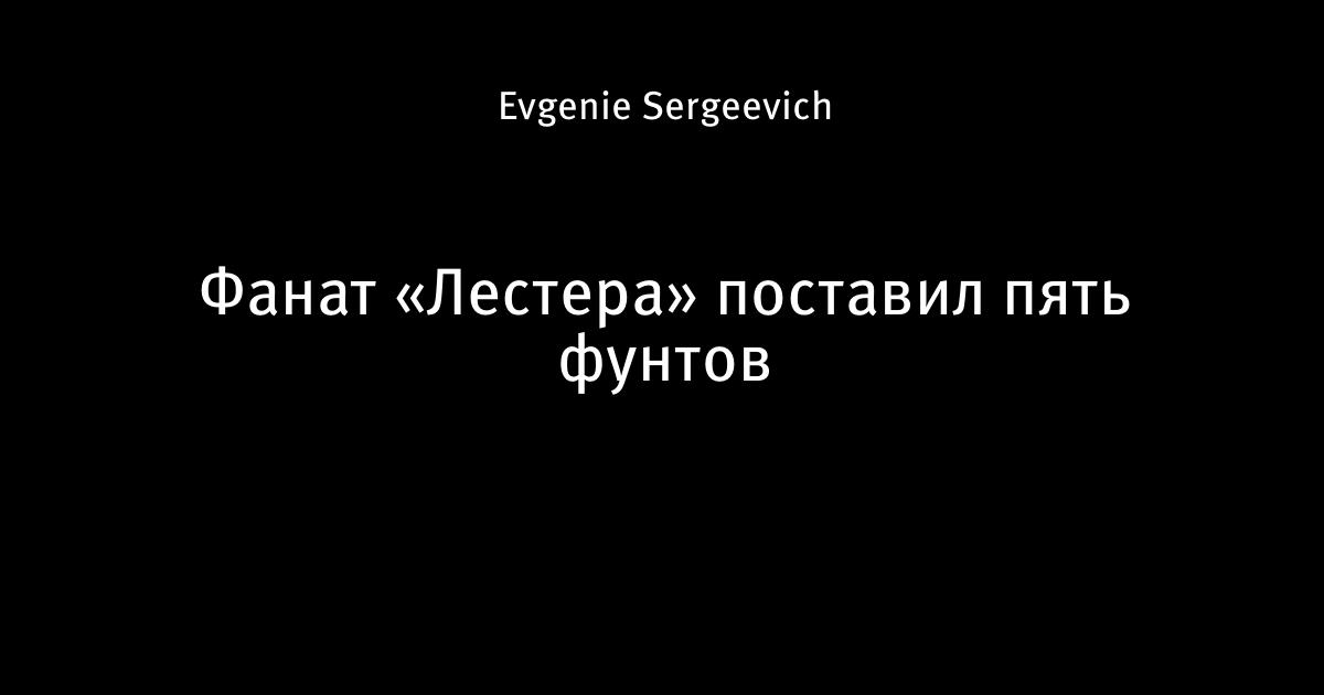 17 декабря 2015, 01:35 Фанат «Лестера» поставил пять фунтов Автор Evgenie Sergeevich Этот пост опубликован в блоге на Трибуне Sports.ru. Присоединяйтесь к крупнейшему сообществу спортивных болельщиков! Другие посты блога Вы это видели? премьер-лига Англия Лестер фото