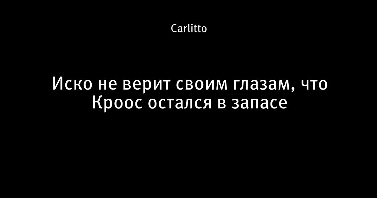 17 декабря 2015, 18:23 Иско не верит своим глазам, что Кроос остался в запасе Автор Carlitto Этот пост опубликован в блоге на Трибуне Sports.ru. Присоединяйтесь к крупнейшему сообществу спортивных болельщиков! Другие посты блога Телевизор 3.0 Иско Реал Мадрид Тони Кроос