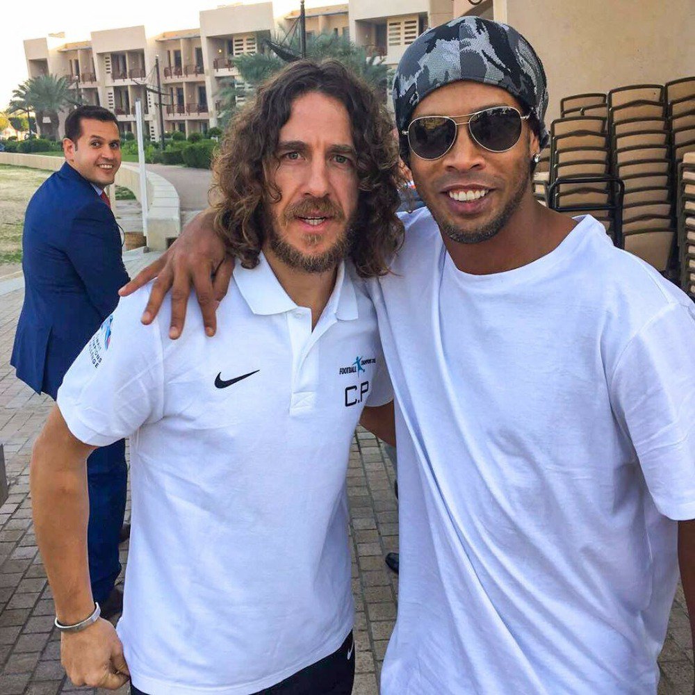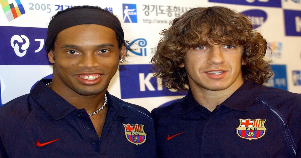 Роналдиньо и Карлес Пуйоль: в 2004-м и 2015-м