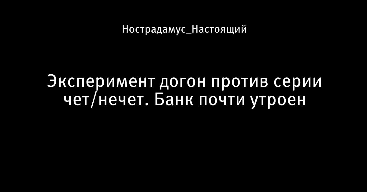 Эксперимент догон против серии чет/нечет. Банк почти утроен