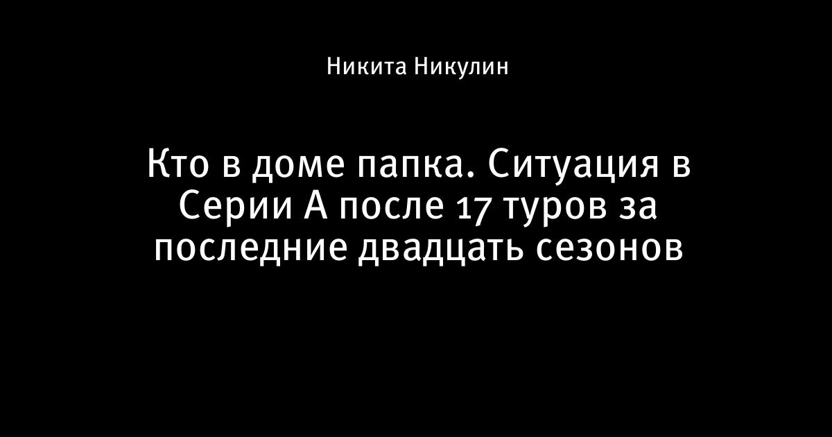 22 декабря 2015, 13:05 Кто в доме папка. Ситуация в Серии А после 17 туров за последние двадцать сезонов Автор Никита Никулин Наполи серия А Италия Фиорентина Милан Ювентус