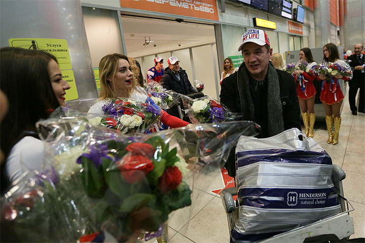 Валерий Брагин в темном пальто и шарфе и яркой кепке "Russia is my life" конечно эпчно смотрится! Можно быть уверенным - для него это не просто слова на кепке.