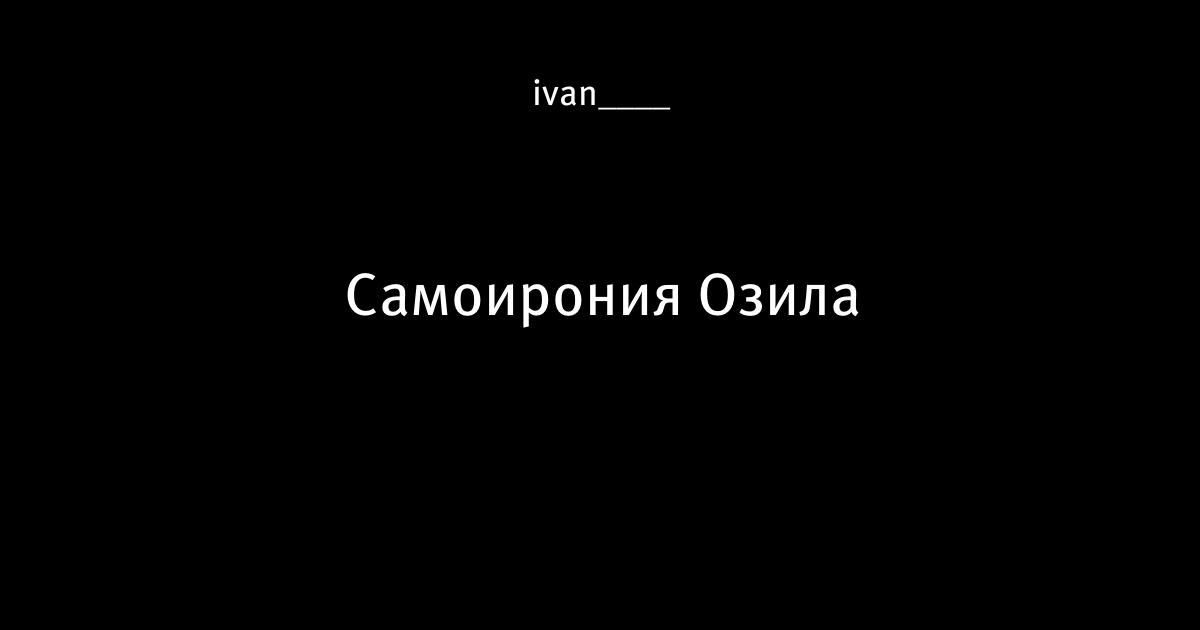 9 января 2016, 05:36 Самоирония Озила Вопрос болельщика: Какое первое английское слово ты выучил? Озил: Ассист, конечно.... А нет... Просто шучу Автор ivan____ Этот пост опубликован в блоге на Трибуне Sports.ru. Присоединяйтесь к крупнейшему сообществу спортивных болельщиков! Другие посты блога Вы это видели? Месут Озил