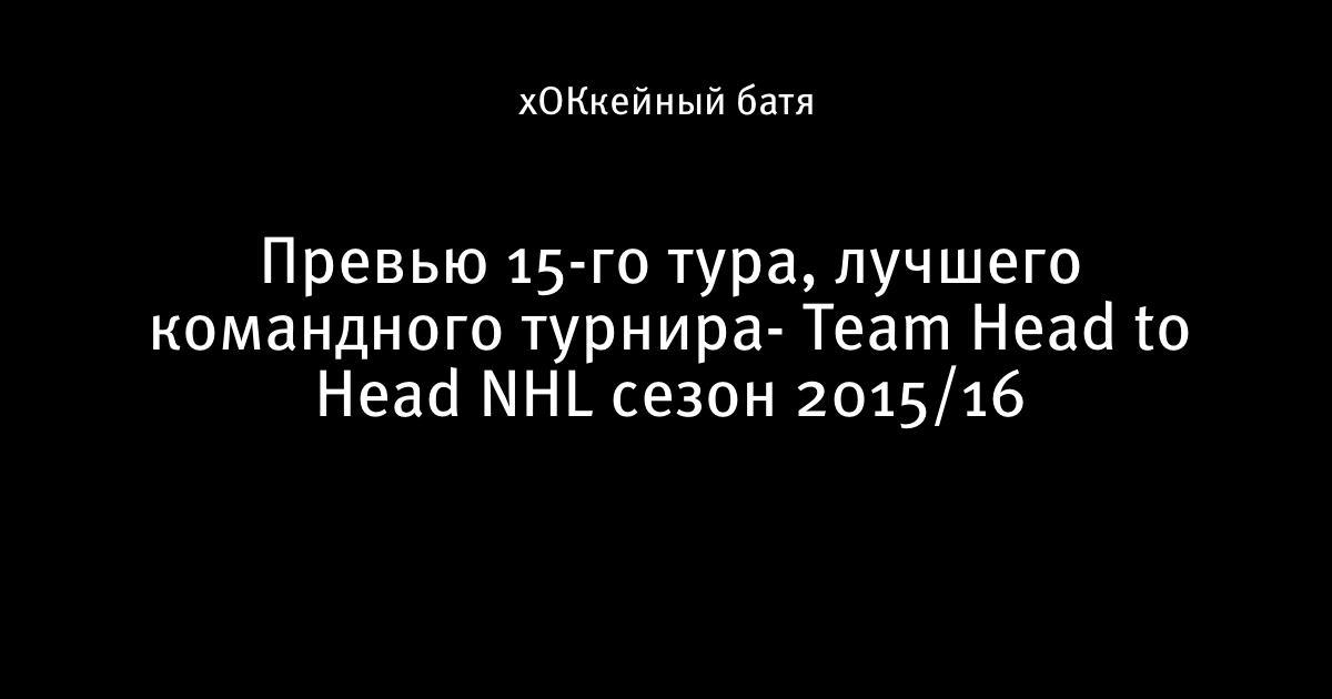 Превью 15-го тура, лучшего командного турнира- Team Head to Head NHL сезон 2015/16