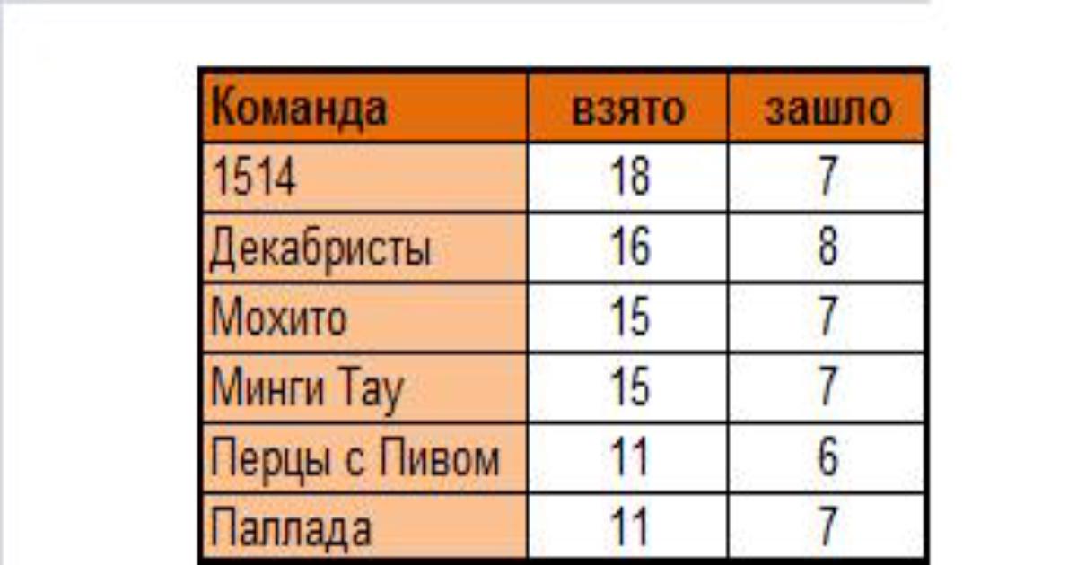 Лучшая команда тура по сумме УВ в целом: Мохито (24 варианта)