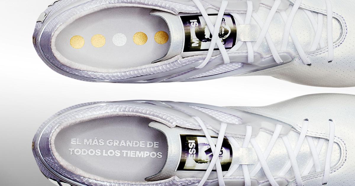 На стельке под правой ногой платиновым цветом нанесена фраза «el más grande de todos los tiempos», которая означает «Величайший всех времен».