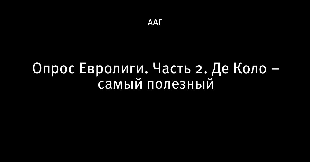 Опрос Евролиги. Часть 2. Де Коло – самый полезный