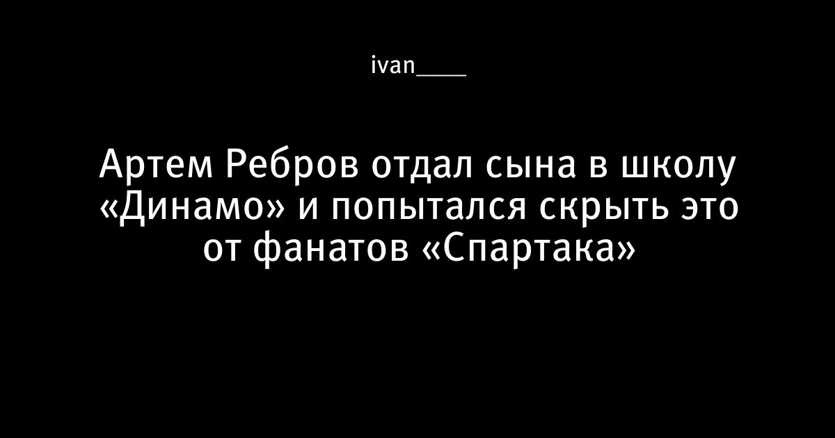 18 января 2016, 22:15 Артем Ребров отдал сына в школу «Динамо» и попытался скрыть это от фанатов «Спартака» Голкипер «Спартака» замазал эмблему клуба, в который отдал сына Оригинал Автор ivan____ Этот пост опубликован в блоге на Трибуне Sports.ru. Присоединяйтесь к крупнейшему сообществу спортивных болельщиков! Другие посты блога Вы это видели? Артем Ребров Спартак Иван Скобрев Динамо Москва
