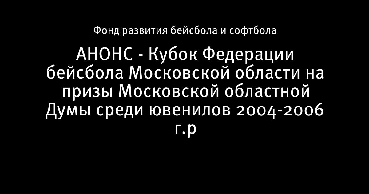 АНОНС - Кубок Федерации бейсбола Московской области на призы Московской областной Думы среди ювенилов 2004-2006 г.р