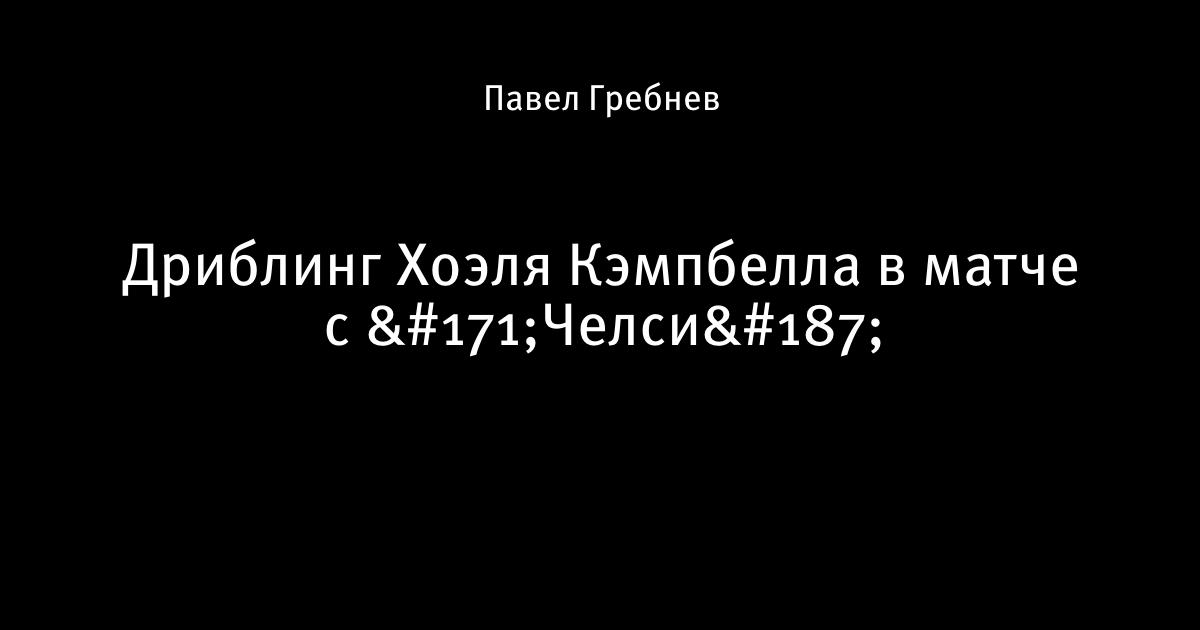 24 января 2016, 20:09 Дриблинг Хоэля Кэмпбелла в матче с «Челси» 1 Автор Павел Гребнев Этот пост опубликован в блоге на Трибуне Sports.ru. Присоединяйтесь к крупнейшему сообществу спортивных болельщиков! Другие посты блога Эстетика футбола премьер-лига Англия Арсенал Хоэль Кэмпбелл
