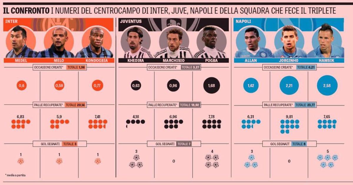 Сравнение полузащиты «Интера», «Ювентуса» и «Наполи» от «Gazzetta dello Sport»