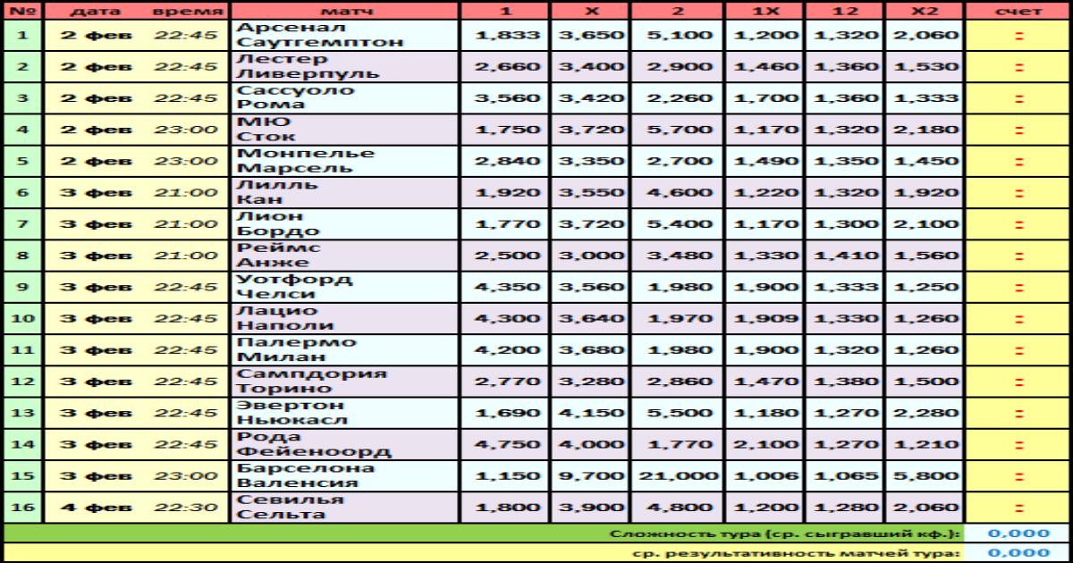 В помощь игрокам выкладываю эксельку для заполнения прогноза.