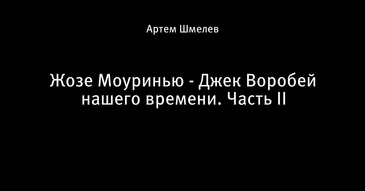 Ох, тяжелый сегодня день был, с утра пошёл играть в футбол, потянул связки и теперь хожу хромаю как доктор Хаус. Плюс сообщили, что победил в каком-то конкурсе от вуза, и теперь десятого числа нужно ехать в Москву на награждение. Наверное буду там первый, кто выйдет за дипломом и литературой (да-да, именно такие ценнейшие призы в этом конкурсе) с тростью) Ну да ладно. Прошу прощения за это никому не нужное лирическое отступление. Похоже нужно создавать что-то вроде твиттера. Пришло время второй части истории про пирата Жозе Моуринью. Она видимо, будет не последней. Материала хватило и на три части. Хотел вообще-то выложить ночью всё сразу, но не успеваю, вспомнилось, что сегодня в полночь отключат интернет, а мне до этого времени нужно понабрать оттуда материал для третьей главы диплома. Пришлось разделить эту часть на две. Скорее всего, это не лучшим образом ударит по интересности статьи. Как и во всех фильмах, первая часть всегда лучше)