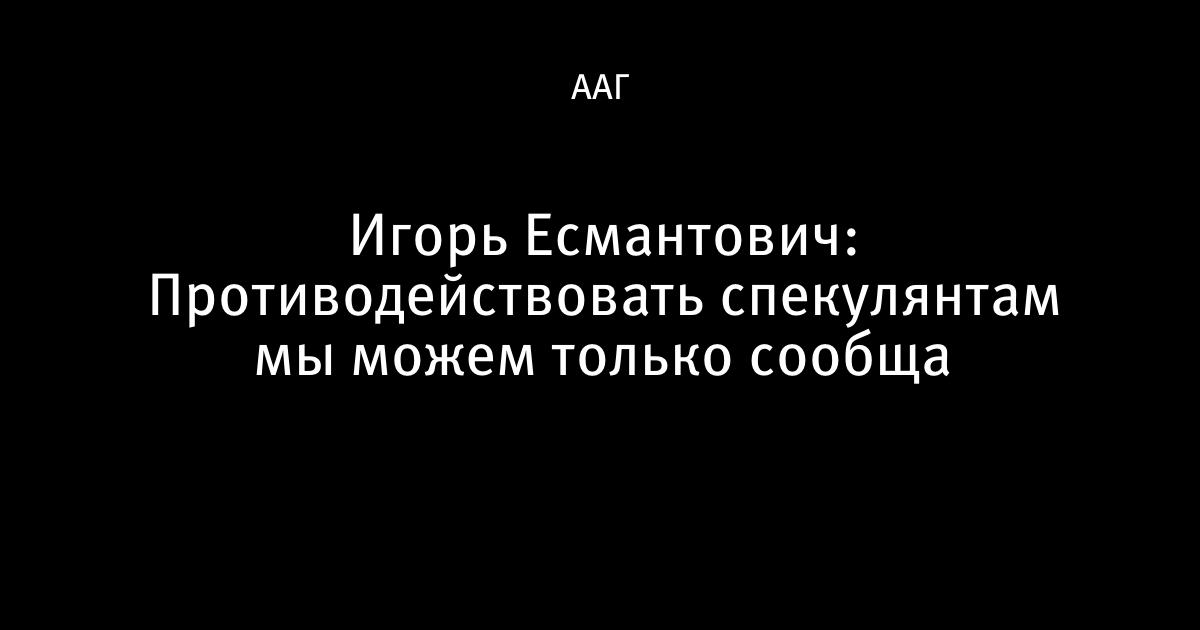 Игорь Есмантович: Противодействовать спекулянтам мы можем только сообща