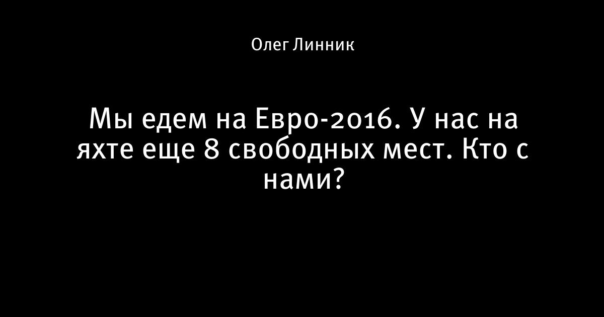 Мы едем на Евро-2016. У нас на яхте еще 8 свободных мест. Кто с нами?