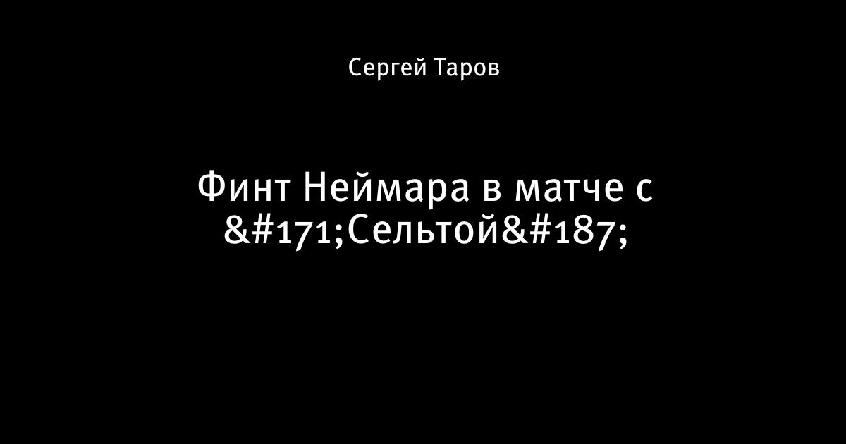 15 февраля 2016, 09:57 Финт Неймара в матче с «Сельтой» 1 Автор Сергей Таров Этот пост опубликован в блоге на Трибуне Sports.ru. Присоединяйтесь к крупнейшему сообществу спортивных болельщиков! Другие посты блога Barça Неймар Барселона
