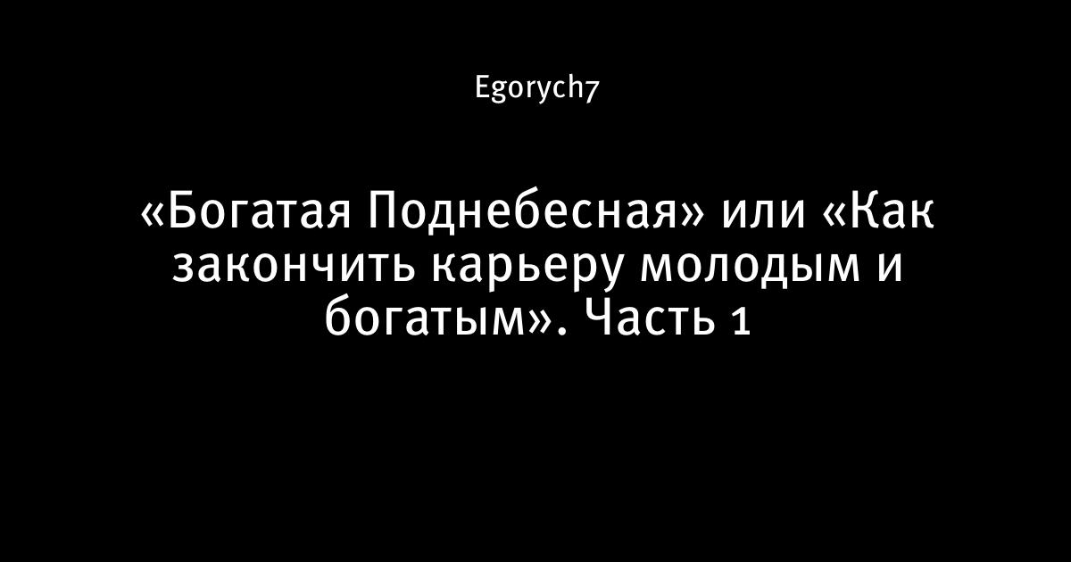 «Богатая Поднебесная» или «Как закончить карьеру молодым и богатым». Часть 1