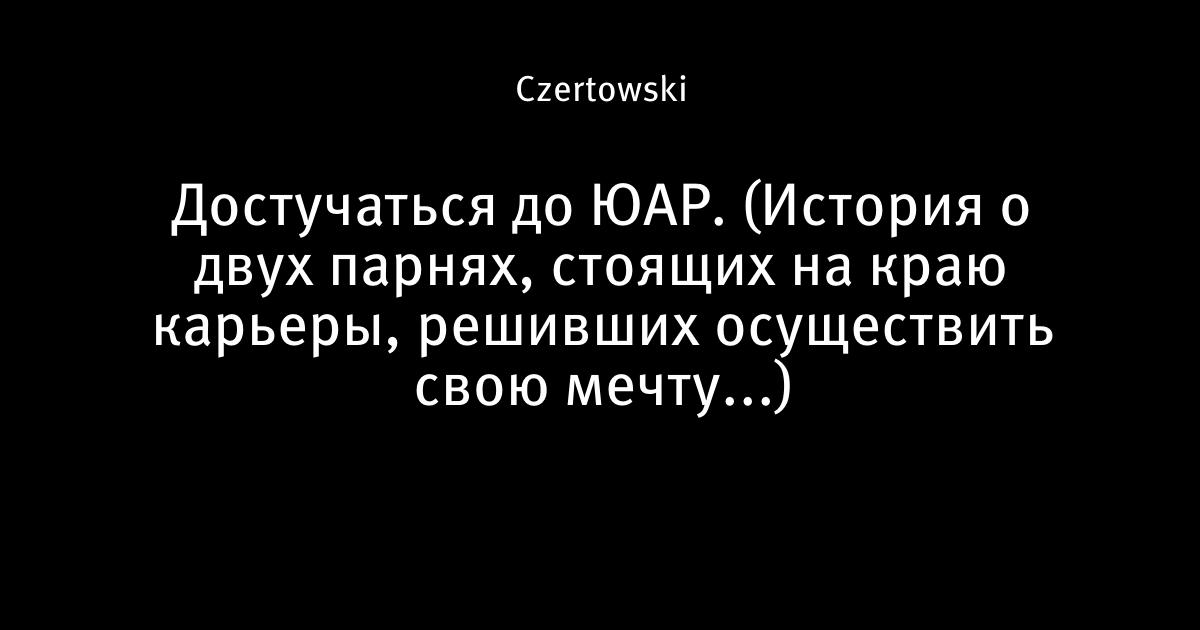 Достучаться до ЮАР. (История о двух парнях, стоящих на краю карьеры, решивших осуществить свою мечту...)