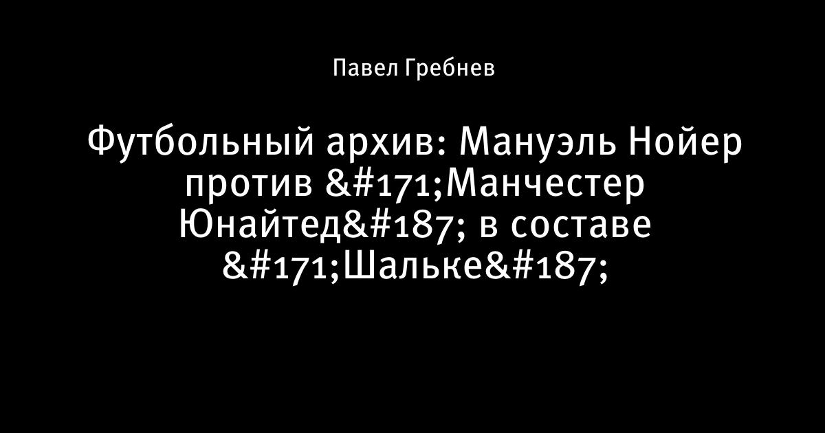 16 февраля 2016, 15:04 Футбольный архив: Мануэль Нойер против «Манчестер Юнайтед» в составе «Шальке» 1 Автор Павел Гребнев Этот пост опубликован в блоге на Трибуне Sports.ru. Присоединяйтесь к крупнейшему сообществу спортивных болельщиков! Другие посты блога Эстетика футбола Шальке Бавария Лига чемпионов УЕФА Мануэль Нойер