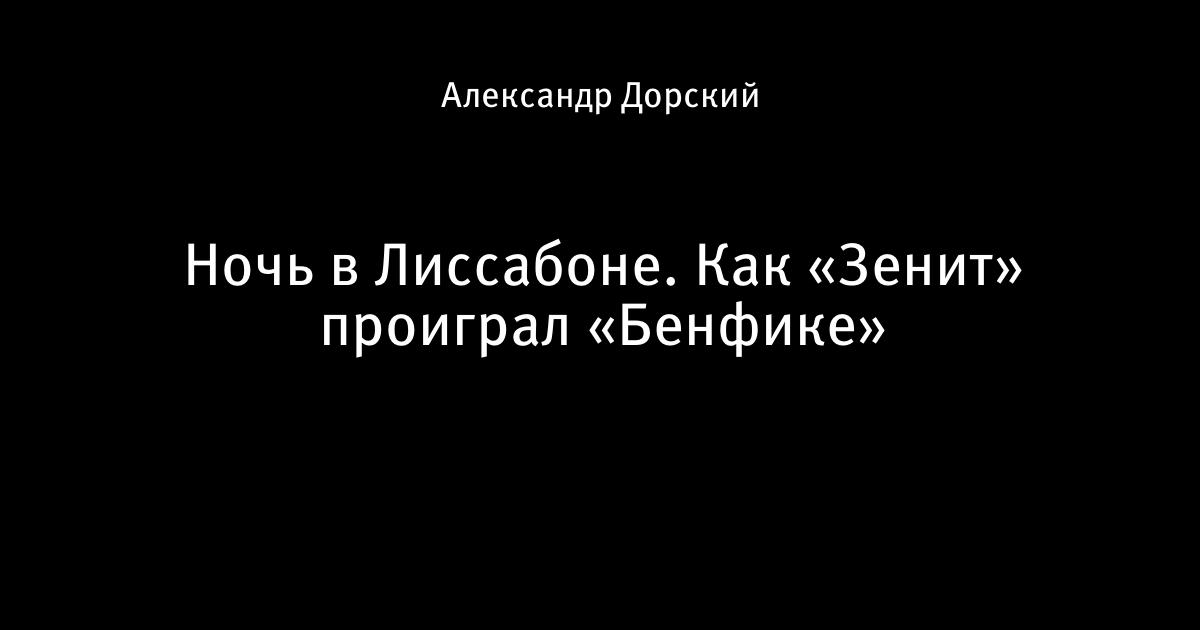 Ночь в Лиссабоне. Как «Зенит» проиграл «Бенфике»